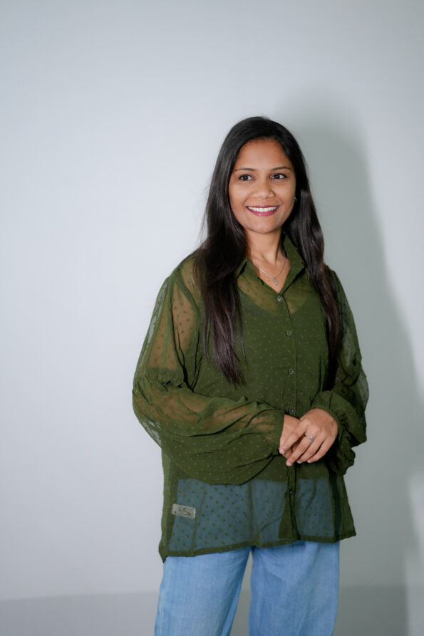 Step into effortless sophistication with this green chiffon western shirt, paired with a matching inner for a flawless layered look. Designed with lightweight, semi-sheer chiffon, it drapes beautifully and adds a touch of modern femininity to your wardrobe. The inner ensures complete comfort and confidence, while the outer shirt brings that chic western flair with its relaxed fit and graceful flow.